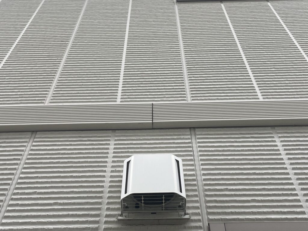 軒天に仕上げ材の光触媒プロテクトコーティング(クリスタルシーズンtg)を塗布します。