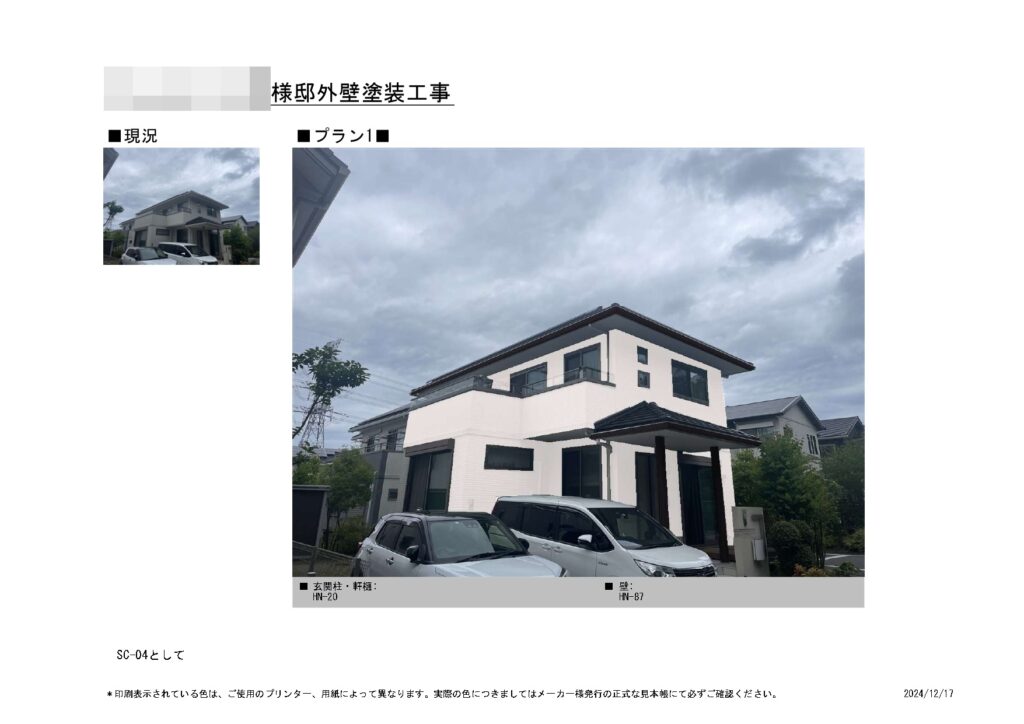 カラーシミュレーションは4パターンご提案させて頂きました。