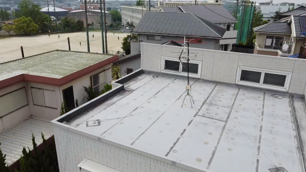 屋上は塩ビシート防水が施されております。浮き箇所や亀裂は無く良好な状態だと思われます。
