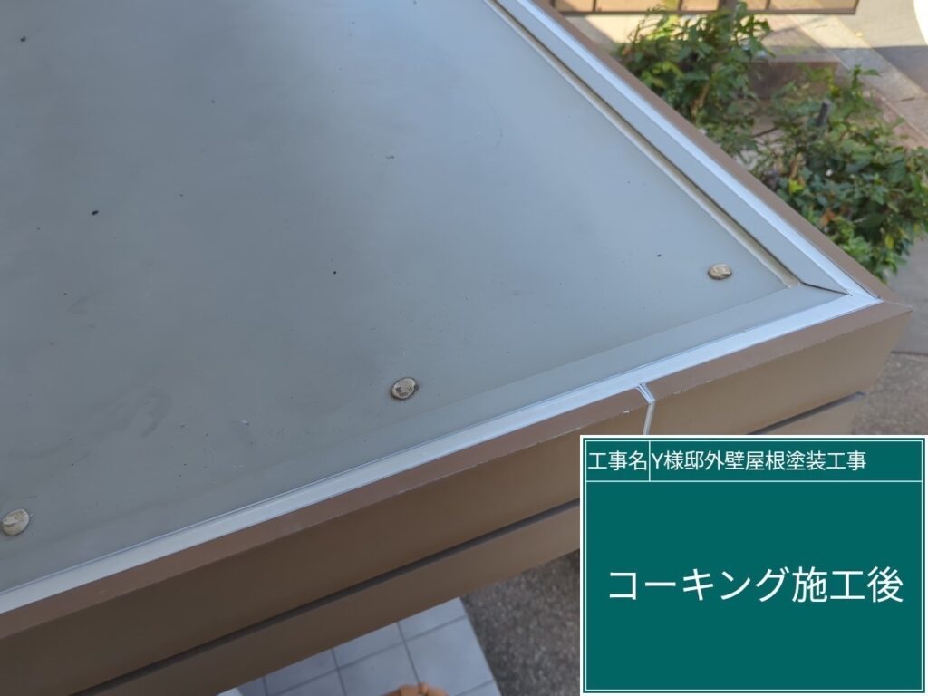 Y様のお家は、築16年で初めての外壁屋根塗装工事となります。Y様のお家は、トヨタホームさんのお家であり、外壁は窯業系サイディングボードの外壁です。トヨタホームさんのお家の特徴として、目地部分にコーキングではなくパッキンが打たれていることがほとんどで、Y様のお家のように、簡単に剥がすことができるような状態や、浮きが出る状態になっていたら打ち替えの時期となります。パッキンには専用のブリードオフプライマーを塗布してから塗装をおこなうことが重要であります。屋根は薄型スレート瓦(無石綿スレート/カラーベスト等)です。板金部にサビ止めを塗布後、屋根塗料にて塗装致します。合わせてタスペーサー(縁切り)設置も行います。