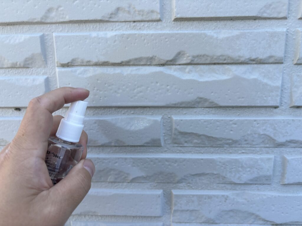 壁に仕上げ材の光触媒プロテクトコーティング(クリスタルシーズンtg)を塗布します。