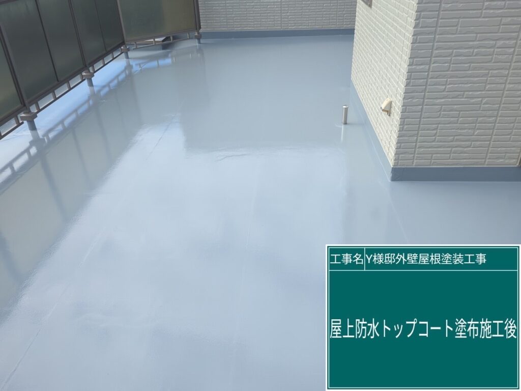 ベランダ壁に仕上げ材の光触媒プロテクトコーティング(クリスタルシーズンtg)を塗布します。